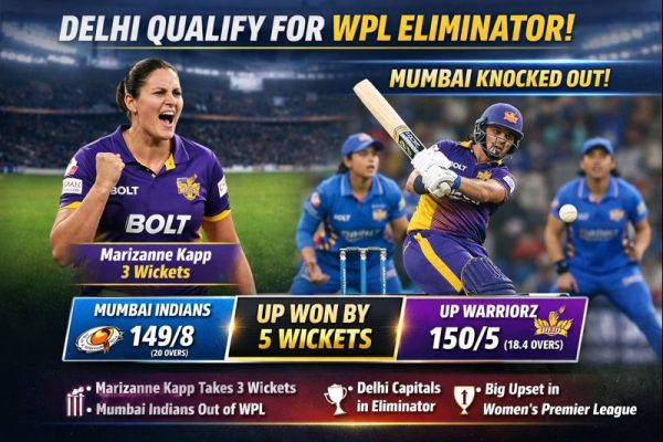 Delhi Capitals have secured their place in the Women’s Premier League (WPL) Eliminator after a dramatic result on Tuesday. Two-time champions Mumbai Indians were knocked out of the tournament as UP Warriorz defeated them by 5 wickets in a must-win league match. The win helped UP finish their campaign on a high note, while Mumbai’s…